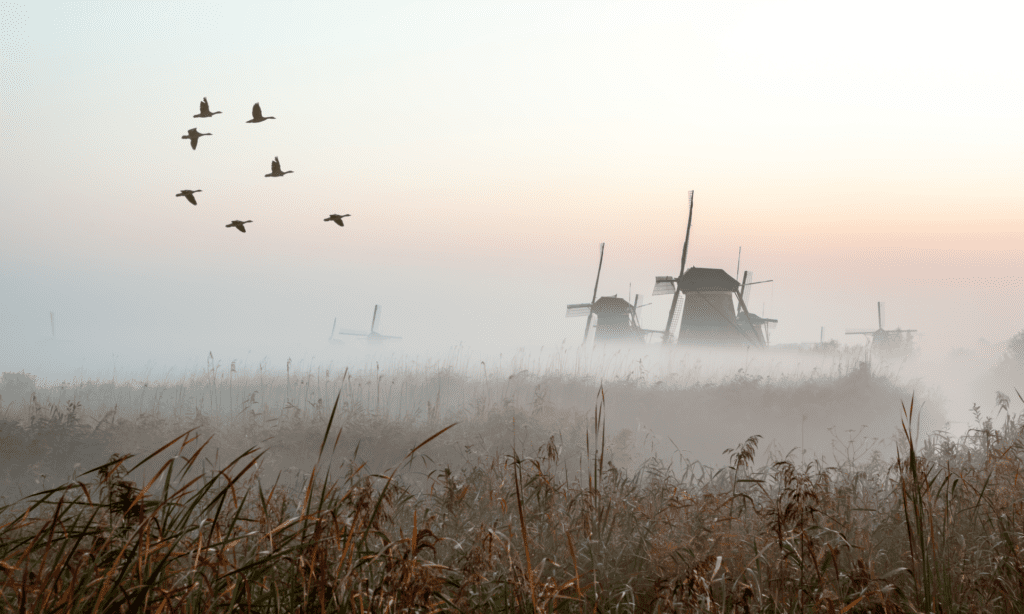 Dedinka Kinderdijk je stelesnením toho, čo vám príde na myseľ, keď sa povie klasická vidiecka holandská krajina. Inými slovami, veľa veterných mlynov na jednom mieste. Dokopy devätnásť monumentálnych mlynov bolo postavených na počiatku osemnásteho storočia, aby zabránili záplavám a udržali pôdu v suchu. Od roku 1997 sú zapísané v zozname svetového dedičstva UNESCO.