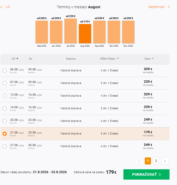 - stravovanie formou raňajok – forma stravovania závisí od obsadenosti hotela