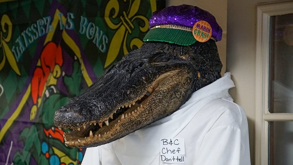 Keď už sme pri tých nezvyčajnostiach, podnik B & C Riverside naše tvrdenia len potvrdzuje. My sme tam pôvodne vošli hlavne preto, že sme po ceste z plantáže Oak Alley poriadne zmokli a chceli trochu uschnúť. No a keď sme pri ceste videli tabuľu upozorňujúcu na vyhlásené pochúťky z aligátorov, nebolo nad čím premýšľať.