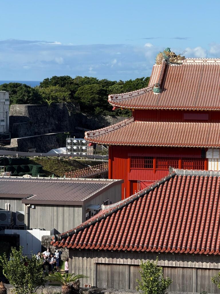 Hrad Shuri bol historickým sídlom kráľov Ryukyu a dnes je zapísaný na zozname svetového dedičstva UNESCO. Hrad postavili v 14. storočí a vydržal až do druhej svetovej vojny, kedy ho zničili. Podarilo sa ho zrekonštruovať, no v roku 2019 zase vyhorel. Ale už sa opäť vracia do svojej podoby, rovnako ako my po včerajšom karaoke.