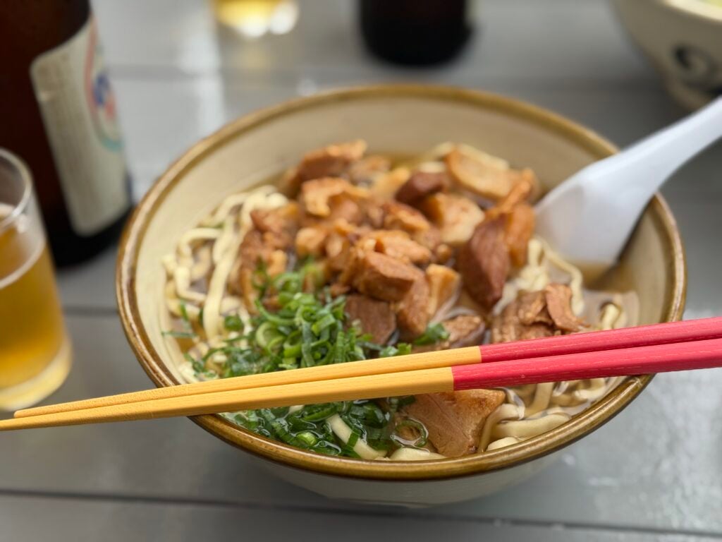 Presúvame sa a ochutnávame ďalšiu japonskú špecialitu – rameny. Tie sa sem pôvodne dostali vďaka čínskym prisťahovalcom, no Japonci chuť týchto polievok totálne prepracovali a urobili z nich jedno zo svojich najtypickejších jedál. A typické tiež je, že v Japonsku si jedlo objednávaš cez automat. Pre Okinawu je ešte špecifickejšie, že do ramenu pridávajú často aj bôčik. Má to historický kontext, pretože bravčové bolo v tunajšom kráľovstve považované za symbol hojnosti a tiež ako bežné jedlo pre amerických vojakov, ktorí tu historicky pôsobia od druhej svetovej vojny.