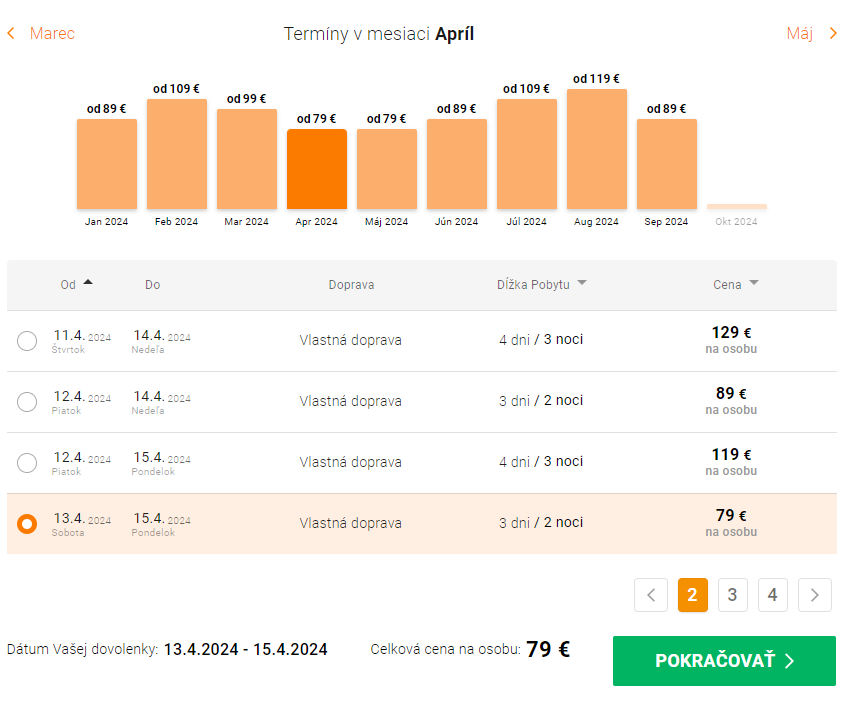 - Termín: napríklad 13.4.2024 sobota – 15.4.2024 pondelok