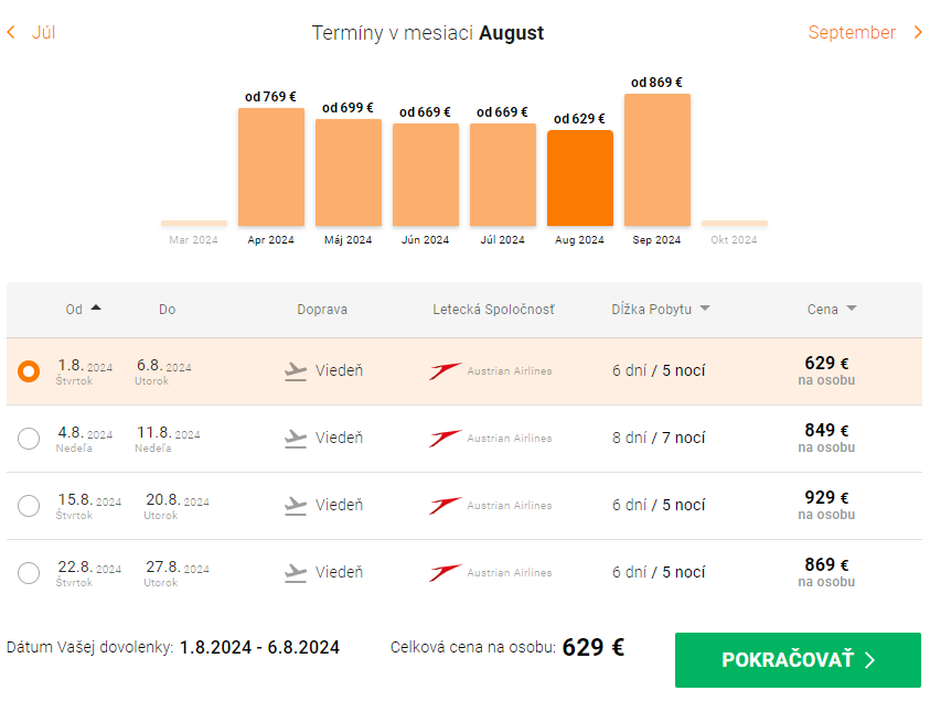 napríklad 1.8.2024 Štvrtok – 6.8.2024 Utorok