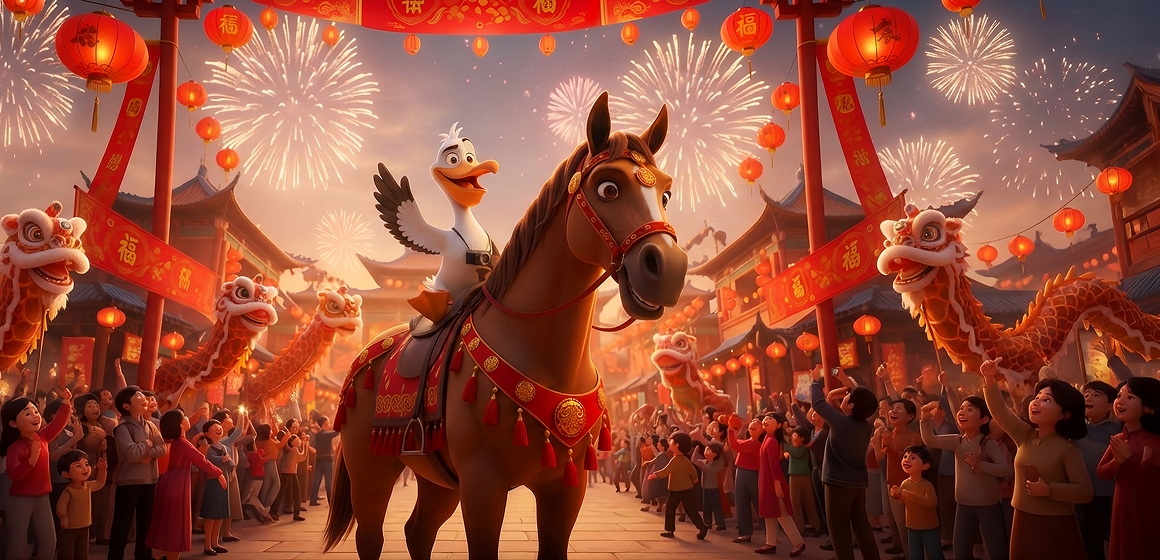 Počas osláv Nového roka v mestách ako Peking či Šanghaj nájdeš dekorácie, grafiky a figúrky koní, ktoré symbolizujú šťastie a úspech. V tradičných prísloviach kôň často znamená rýchly postup a úspech – napríklad želanie „úspech hneď po nasednutí na koňa“ znamená okamžité šťastie.
