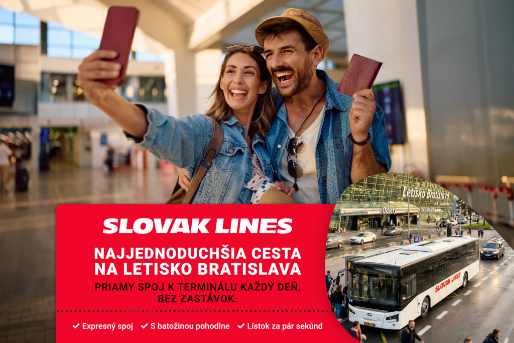 - Výhodný bus na letisko? Odporúčame ti našich kamošov zo Slovak Lines - bezplatná Wi-Fi, klimatizácia, nástup priamo pri termináli letiska, Viedeň - Bratislava 24-krát denne.