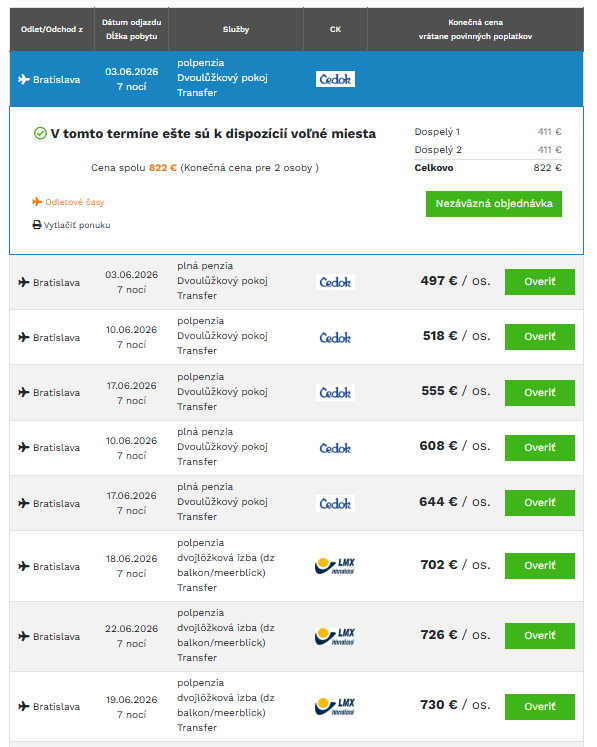 - spiatočná letenka z Bratislavy so všetkými poplatkami