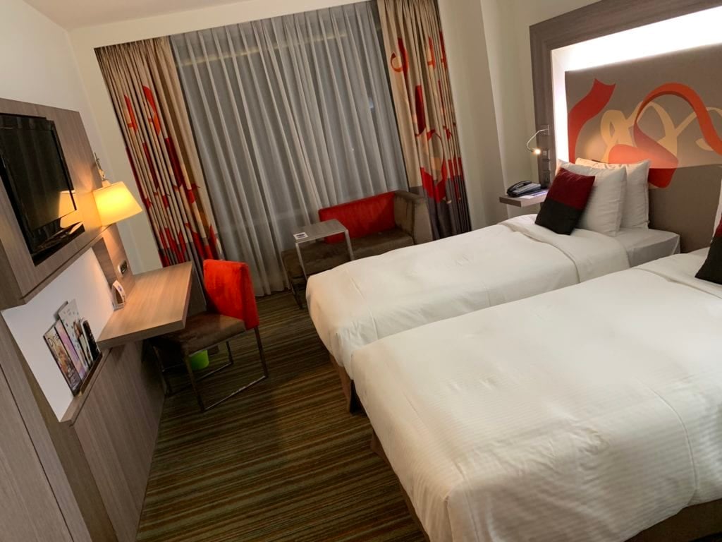 Bývať pri letisku väčšinou nie je až taká výhra. V tomto prípade je to však veľké plus. Ubytovanie som si rezervoval približne mesiac pred príchodom, za 1 noc v parádnom hoteli na letisku (Novotel Taipei Taoyuan International Airport) som zaplatil 120 eur, čo sa ti môže zdať ako veľa peňazí – avšak treba zobrať do úvahy, že v cene má človek okrem luxusnej izby pre dvoch aj veľmi bohaté raňajky (24-hodinový bufet), vstup do wellness dostupný až do 22:00 a bezplatný transfer z letiska a na letisko.